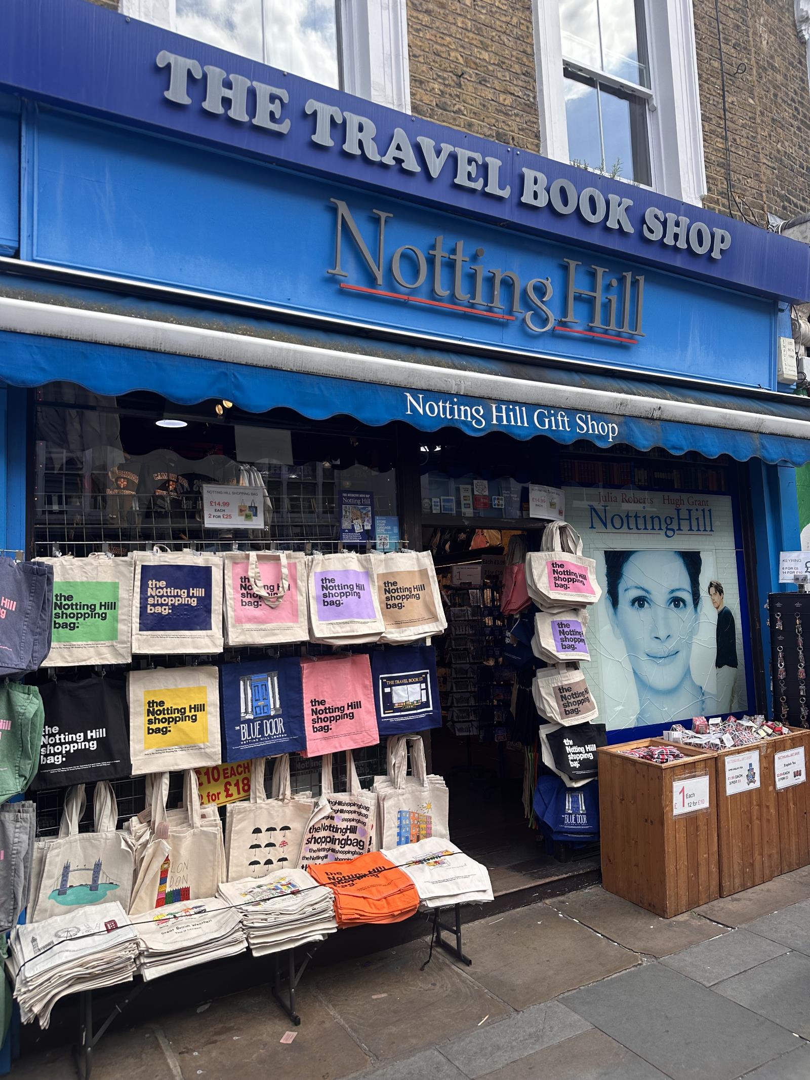 Zum Zeitpunkt der Dreharbeiten war das Geschäft allerdings ein Antiquitätengeschäft, aus der später ein Möbelgeschäft hervorging. Heute ist es ein Souvenirladen, der ganz sicher bewusst sogar die Farben des Notting Hill-Plakats einsetzt. Irreführenderweise haben die heutigen Inhaber sogar auch noch ein Schild mit der Aufschrift „The Travel Book Shop“ angebracht, damit auch ja kein Besucher diese Filmlocation verfehlen kann.