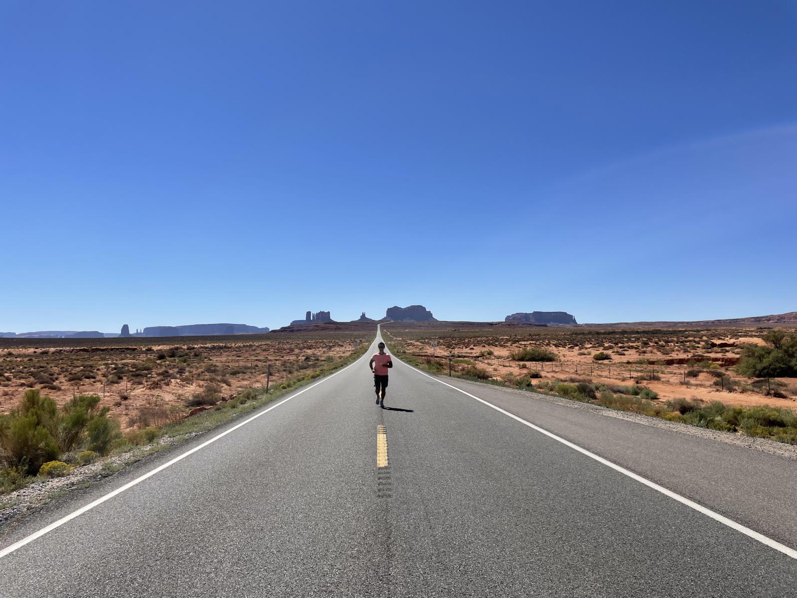 Natürlich ist der Punkt clever gewählt, denn die Kulisse ist wunderschön. So sieht man im Hintergrund sehr schön einige der bekannten Felsen des Monument Valley.
