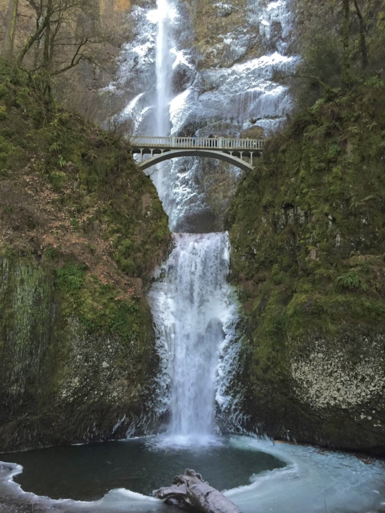Zum anderen wären da noch die Multnomah Falls – die eines der Highlights überhaupt in Oregon darstellen. Der zweistufige (165 m und 21 m) Wasserfall mit einer Gesamthöhe von 189 Metern ist ein großartiges Fotomotiv und liegt nur ca. 15 Minuten von der Bridge of the Gods entfernt.